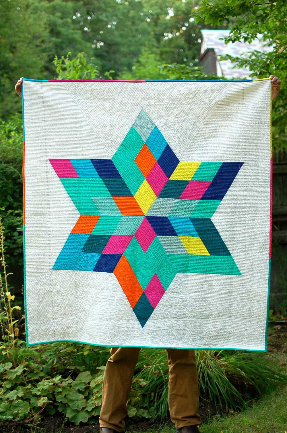 It’s no secret I am a huge fan of Cortney Heimerl ‘s quilts. I admire the way she pares down traditional designs and interprets them in fresh, bold colors, infusing the motifs with a modern energy. Her quilts are simple, elegant, straightforward. When I saw that one of my favorites, the Morningstar Quilt, is now available as a free pattern from Robert Kaufman, I had to make it.