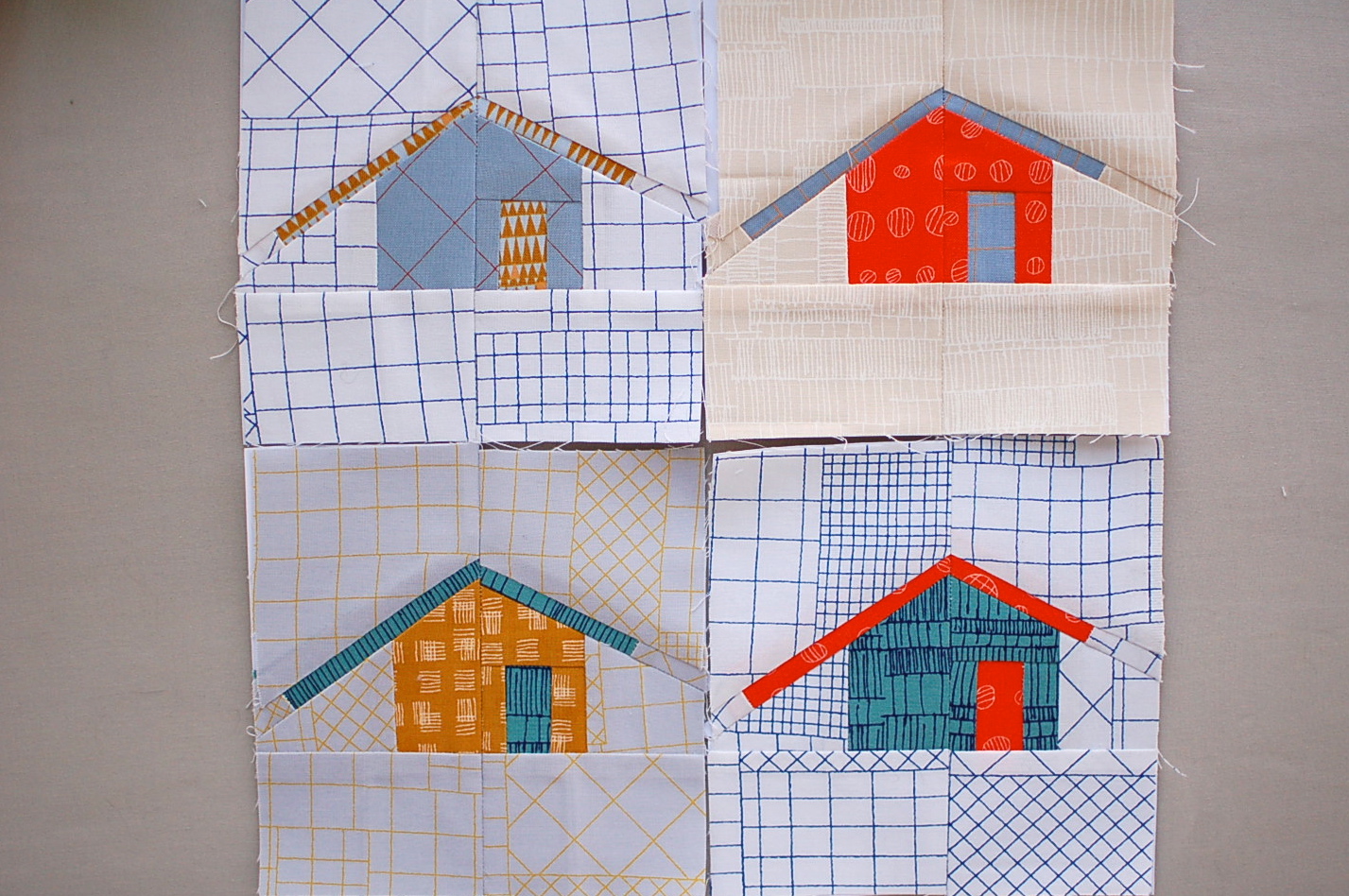My son wanted to make this with me, so I had him cut the fabric while I pieced. By the by, paper piecing with a four year old takes a gazillion years. I could hear the ice melting and trickling away outside as I waited for him to finish meticulously cutting each and every piece. But in the end, it was so much fun! And aren’t these wee houses the freaking cutest?